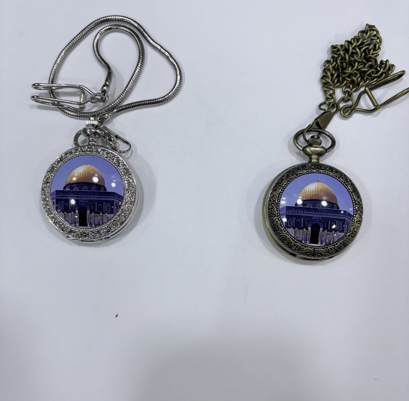 ÖN YÜZ MESCİD-İ AKSA GÖRSELLİ, ARKA YÜZ DESENSİZ PARLAK LAZER YAZIYA UYGUN KÖSTEKLİ CEP SAATİ